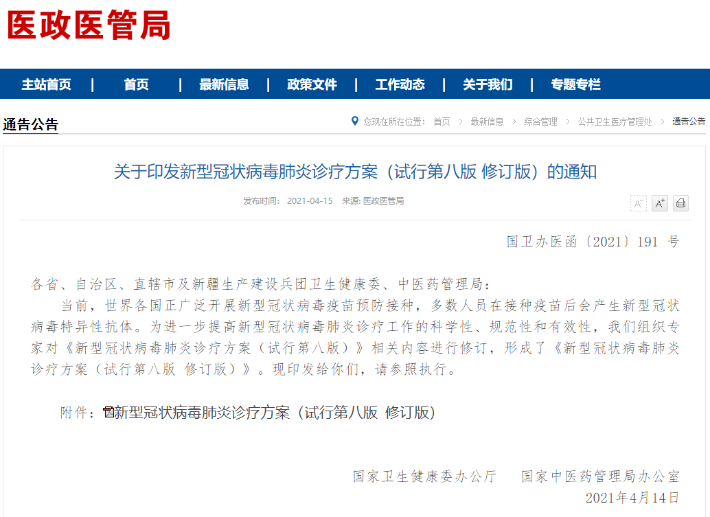 新冠肺炎診療方案最新版公布 抗體診斷僅適用于“未接種新冠疫苗者”
