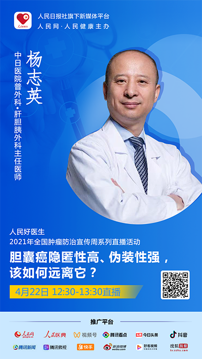 膽囊癌“隱匿性”那么高,“偽裝技術(shù)”那么強(qiáng),我們應(yīng)該如何預(yù)防它?2021年4月22日(周四)12:30-13:30,中日醫(yī)院肝膽外科主任醫(yī)師楊志英將做客人民日報(bào)社旗下新媒體“人民好醫(yī)生”客戶端,就膽囊癌的預(yù)防問題為大眾答疑解惑。