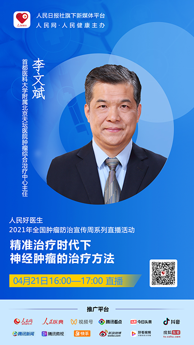 2020年4月21日(周三)16:00—17:00,“人民好醫(yī)生”客戶端將邀請(qǐng)首都醫(yī)科大學(xué)附屬北京天壇醫(yī)院腫瘤綜合治療中心主任李文斌,聊一聊精準(zhǔn)治療時(shí)代下神經(jīng)腫瘤治療的相關(guān)內(nèi)容。
