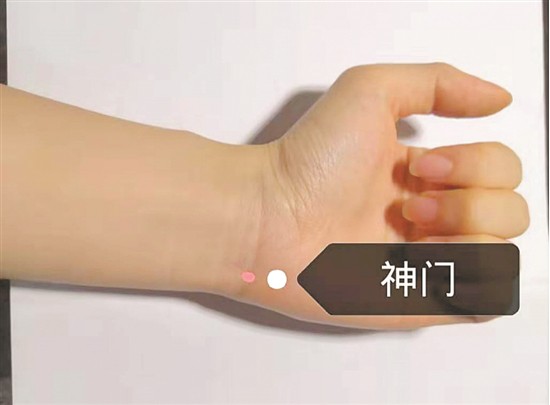 操作:手掌4指并攏,放于內(nèi)踝最高點(diǎn)上,脛骨后食指處即為三陰交;神門位于腕掌側(cè)橫紋尺側(cè)端,尺側(cè)腕屈肌腱的橈側(cè)凹陷處(小指延伸下來,到手掌根部末端凹陷處),少府位于掌面,小拇指屈曲,指端下即是少府穴,可用拇指按揉或用筷子等較為圓鈍之物輕輕點(diǎn)揉至有酸脹感,時(shí)間約3-5分鐘。
