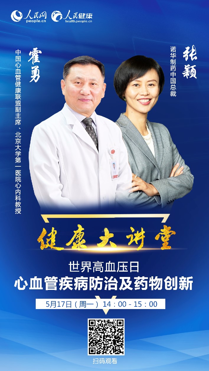 5月17日14:00至15:00我們有幸邀請到中國心血管健康聯(lián)盟副主席、北京大學(xué)第一醫(yī)院心內(nèi)科教授霍勇;諾華制藥(中國)總裁張穎做客人民健康大講堂,分享心血管疾病防治及藥物創(chuàng)新話題。