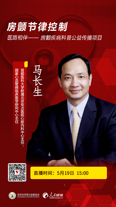 2021年5月19日(周三)15:00-16:00,首都醫(yī)科大學(xué)附屬北京安貞醫(yī)院心臟內(nèi)科中心主任、國家心血管病臨床醫(yī)學(xué)研究中心主任馬長生將做客人民日報(bào)社旗下新媒體“人民好醫(yī)生”客戶端,就房顫節(jié)律控制的相關(guān)話題進(jìn)行在線分享,歡迎屆時(shí)收看。