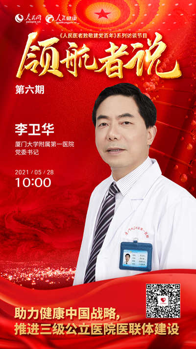5月28日 10:00,廈門大學(xué)附屬第一醫(yī)院黨委書記李衛(wèi)華做客演播室,以“助力健康中國(guó)戰(zhàn)略,推進(jìn)三級(jí)公立醫(yī)院醫(yī)聯(lián)體建設(shè)”為主題進(jìn)行訪談。