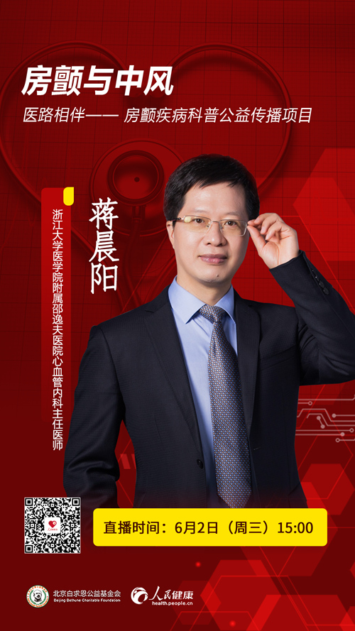 6月2日(周三)15:00-16:00,“人民好醫(yī)生”客戶端將邀請浙江大學附屬邵逸夫醫(yī)院心血管內(nèi)科主任醫(yī)師、教授蔣晨陽進行視頻直播,給大家科普房顫防治的相關(guān)知識,千萬不要錯過。