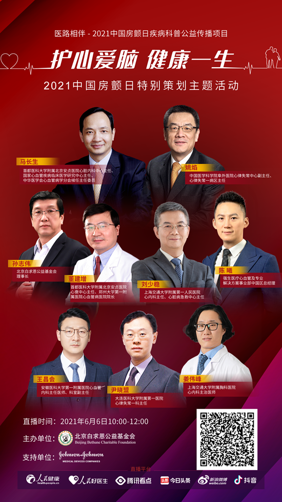 6月6日是第九個(gè)“中國房顫日”。據(jù)悉,北京白求恩公益基金會(huì)聯(lián)合強(qiáng)生(上海)醫(yī)療器材有限公司(以下簡稱:強(qiáng)生醫(yī)療)近期啟動(dòng)了“醫(yī)路相伴”——2021中國房顫日疾病科普公益?zhèn)鞑ロ?xiàng)目,并計(jì)劃在6月6日當(dāng)天推出“護(hù)心愛腦 健康一生”——2021中國房顫日特別策劃主題活動(dòng),進(jìn)一步拉近醫(yī)患距離,提升公眾對房顫這一疾病和包括射頻消融手術(shù)在內(nèi)的創(chuàng)新臨床解決方案的認(rèn)知水平,推動(dòng)房顫的早診、早治和規(guī)范化診療。