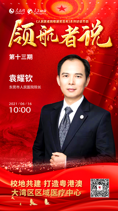 6月16日 10:00,東莞市人民醫(yī)院院長袁耀欽做客演播室,以“校地共建 打造粵港澳大灣區(qū)區(qū)域醫(yī)療中心”為主題進行訪談。