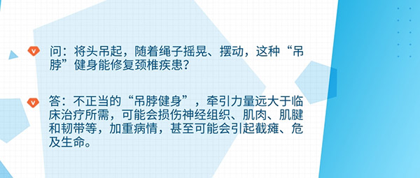 有流言稱,將頭吊起,隨著繩子搖晃、擺動(dòng),這種“吊脖”健身能修復(fù)頸椎疾患。