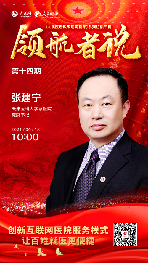 6月18日10:00,天津醫(yī)科大學(xué)總醫(yī)院黨委書記張建寧做客演播室,以“創(chuàng)新互聯(lián)網(wǎng)醫(yī)院服務(wù)模式 讓百姓就醫(yī)更便捷”為主題進行訪談。