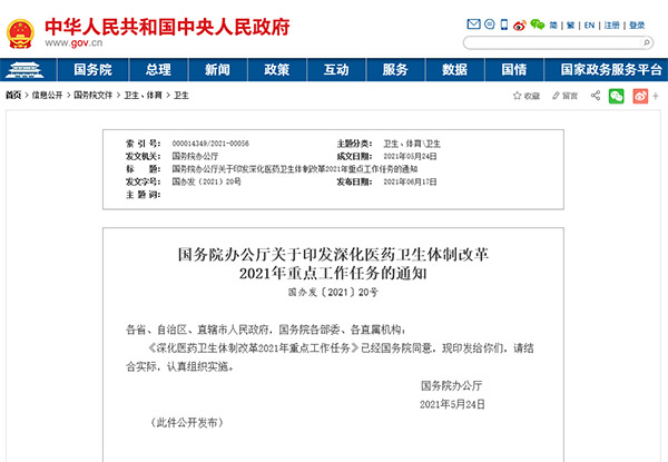 國(guó)辦印發(fā)深化醫(yī)改2021年重點(diǎn)工作任務(wù):加快推進(jìn)醫(yī)療、醫(yī)保、醫(yī)藥聯(lián)動(dòng)改革