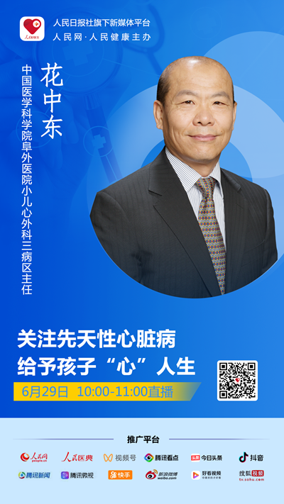 6月29日10:00至11:00,中國醫(yī)學(xué)科學(xué)院阜外醫(yī)院小兒心外科三病區(qū)主任花中東做客人民好醫(yī)生名醫(yī)直播欄目,給公眾科普兒童先天性心臟病治療的相關(guān)知識。