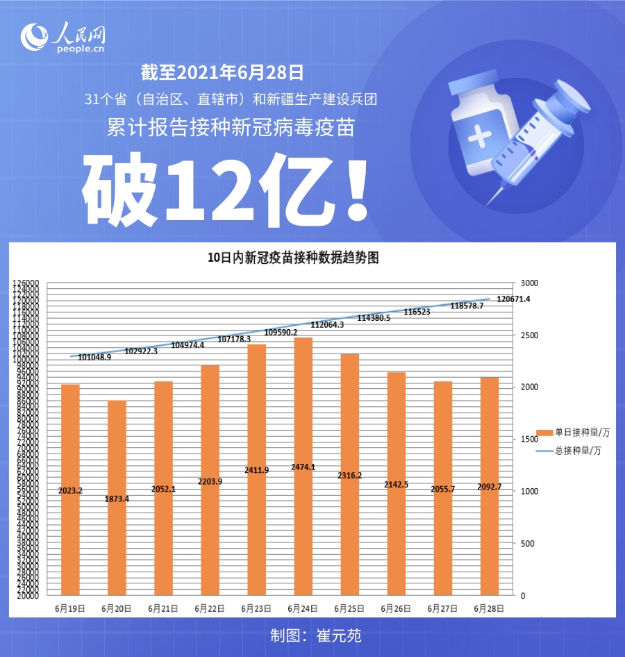 國家衛(wèi)健委:截至6月28日全國累計接種新冠病毒疫苗120671.4萬劑次