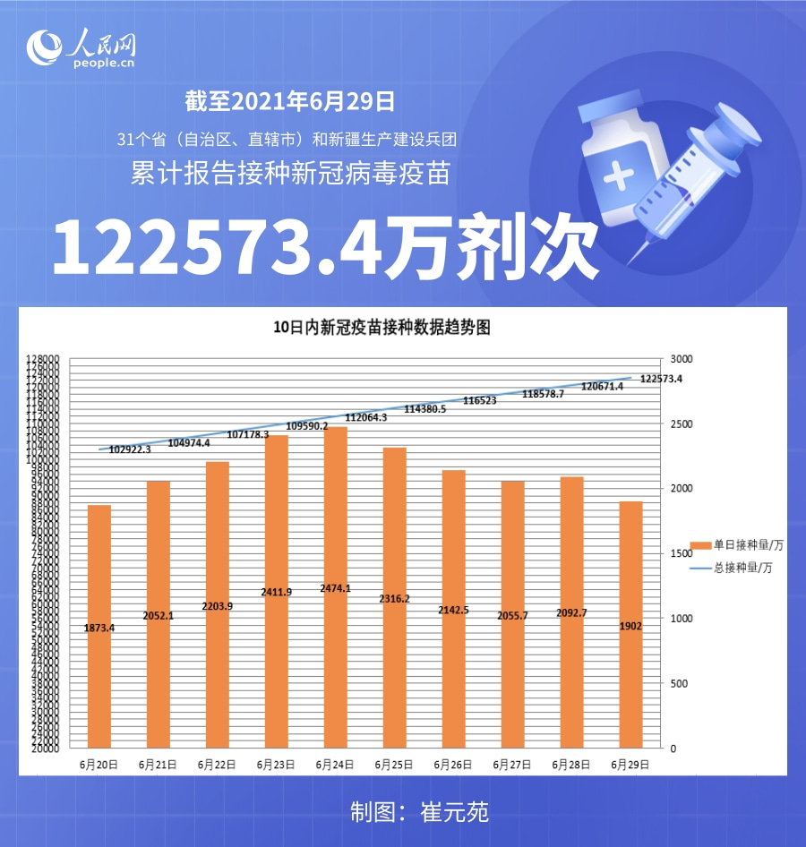 國(guó)家衛(wèi)健委:截至6月29日全國(guó)累計(jì)接種新冠病毒疫苗122573.4萬(wàn)劑次