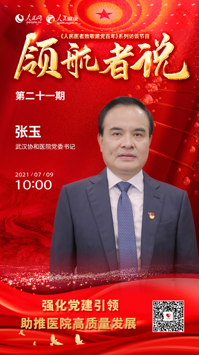 7月9日10:00,武漢協(xié)和醫(yī)院黨委書(shū)記張玉將做客演播室,以“強(qiáng)化黨建引領(lǐng) 助推醫(yī)院高質(zhì)量發(fā)展”為題進(jìn)行訪(fǎng)談。