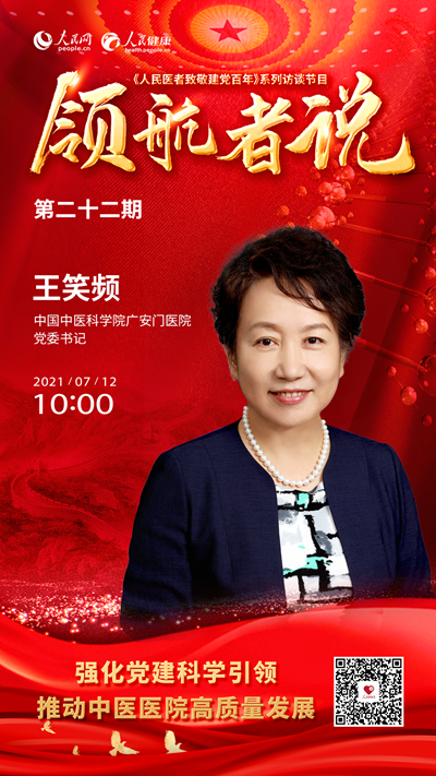 7月12日10:00,中國中醫(yī)科學(xué)院廣安門醫(yī)院黨委書記王笑頻將做客演播室,以“強化黨建科學(xué)引領(lǐng) 推動中醫(yī)醫(yī)院高質(zhì)量發(fā)展”為題進行訪談。