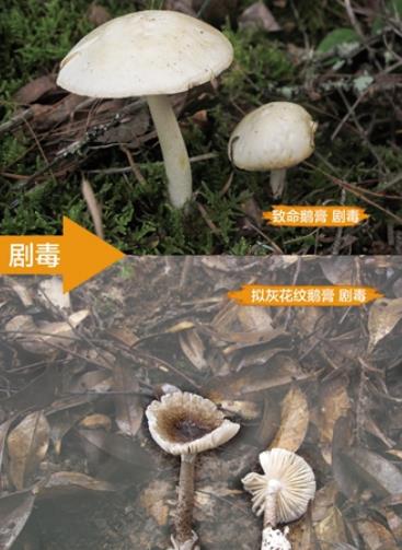 含劇毒的致命鵝膏和擬灰花紋鵝膏。圖片來(lái)源:中國(guó)疾病預(yù)防控制中心