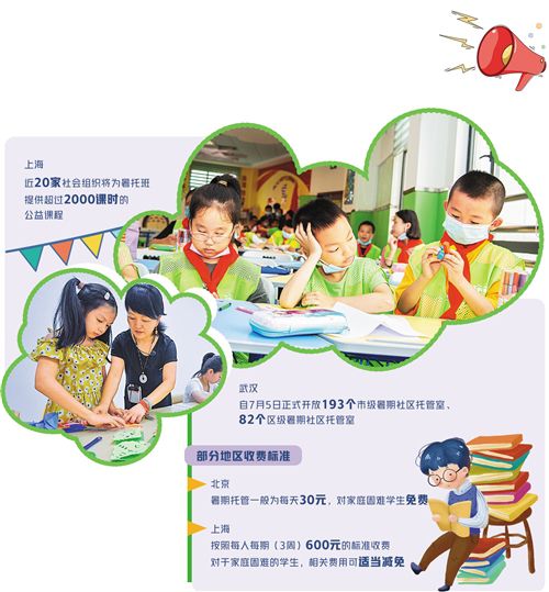 為此,多地政府推出了“暑托班”服務(wù)。7月2日,北京市教委發(fā)布公告,將在暑期推出面向小學(xué)一年級(jí)至五年級(jí)學(xué)生的托管服務(wù),由各區(qū)教委組織,學(xué)校承辦。此前,上海、武漢等多地已推出暑假托管服務(wù)。