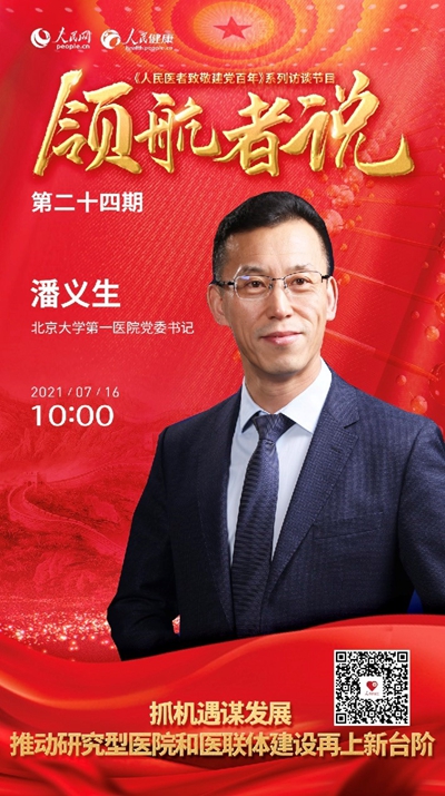 7月16日10:00,北京大學(xué)第一醫(yī)院黨委書記潘義生將做客演播室,以“抓機遇謀發(fā)展 推動研究型醫(yī)院和醫(yī)聯(lián)體建設(shè)再上新臺階”為題進(jìn)行訪談。