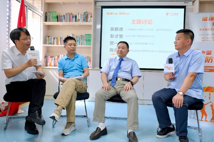 活動現(xiàn)場,武漢市武昌區(qū)疾病預防控制中心免疫規(guī)劃科科長陶志剛、湖北省人民醫(yī)院疼痛科主任賈一帆及武漢市第三醫(yī)院皮膚科主任彭才智,共同就中老年人健康管理與皮膚、疼痛科疾病預防主題進行了討論和分享。