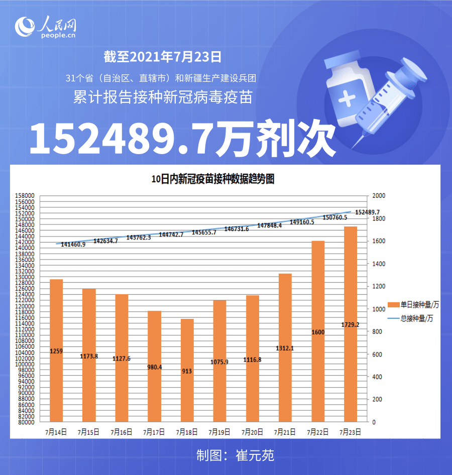 國(guó)家衛(wèi)健委:截至7月23日全國(guó)累計(jì)接種新冠病毒疫苗152489.7萬(wàn)劑次