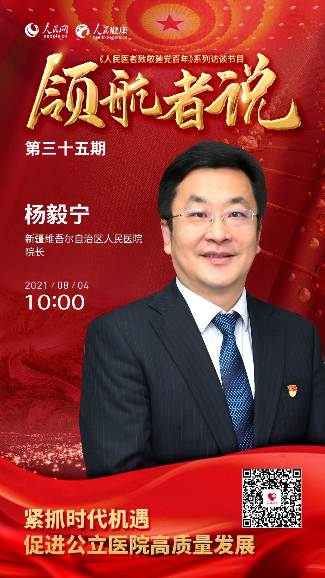 8月4日10:00,新疆維吾爾自治區(qū)人民醫(yī)院院長楊毅寧將作客演播室,以“緊抓時(shí)代機(jī)遇 促進(jìn)公立醫(yī)院高質(zhì)量發(fā)展”為題進(jìn)行訪談。