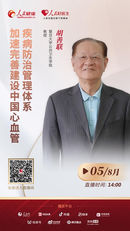 8月5日14:00,復(fù)旦大學(xué)公共衛(wèi)生學(xué)院教授胡善聯(lián)將做客人民日報(bào)社旗下新媒體“人民好醫(yī)生”客戶端直播間,為大家?guī)怼凹铀偻晟平ㄔO(shè)中國心血管疾病防治管理體系”系列訪談對話第二場,為您解答上述問題,歡迎屆時收看。