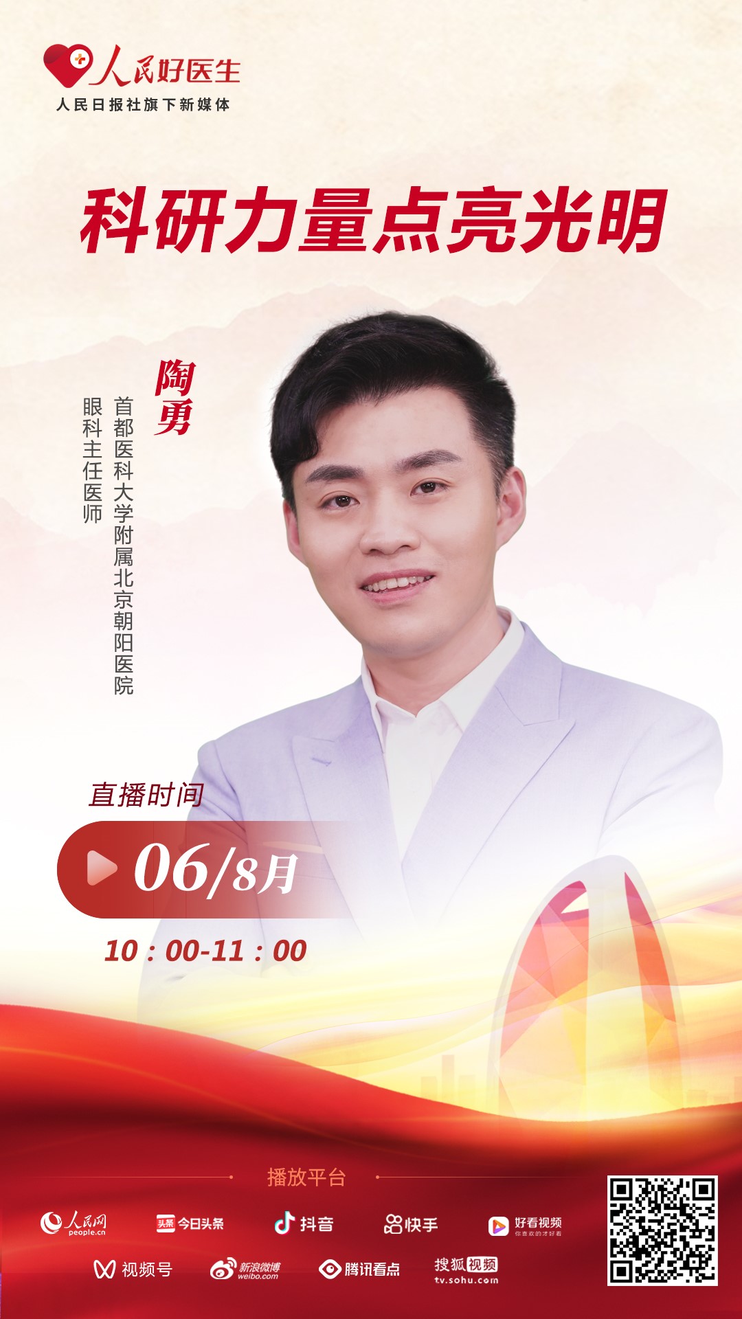 8月6日10:00-11:00,我們邀請到首都醫(yī)科大學附屬北京朝陽醫(yī)院眼科主任醫(yī)師陶勇做客“人民好醫(yī)生”客戶端,就眼底疾病創(chuàng)新治療方式、科研成果轉(zhuǎn)化相關(guān)話題進行深入分享和交流。