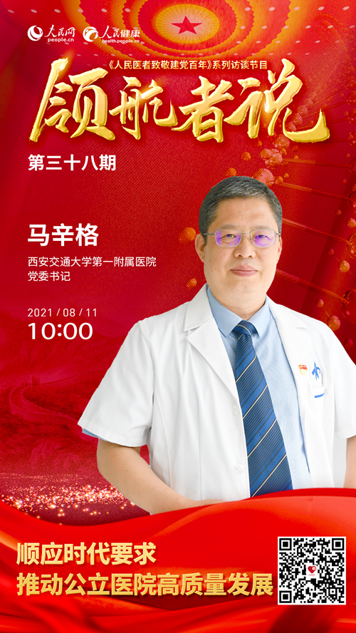 8月11日10:00,西安交通大學(xué)第一附屬醫(yī)院黨委書記馬辛格將做客演播室,以“順應(yīng)時(shí)代要求 推動(dòng)公立醫(yī)院高質(zhì)量發(fā)展”為主題進(jìn)行訪談。