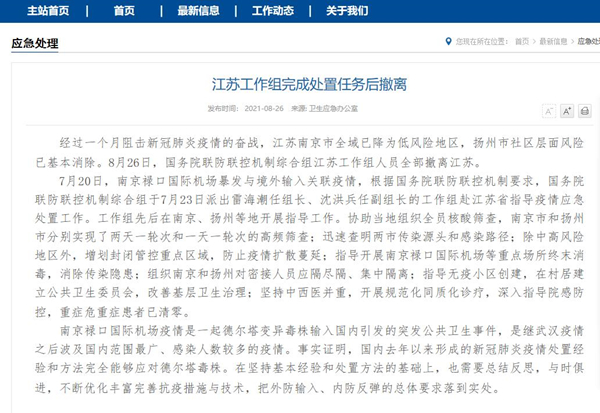 完成疫情處置任務(wù)!聯(lián)防聯(lián)控機(jī)制江蘇工作組人員全部撤離江蘇