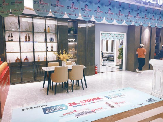 “消費滿10000元減1000元!薄叭珶o醛,巨劃算套餐!”十里河居然之家賣場內(nèi),多家品牌店的門口都擺放著宣傳展板。