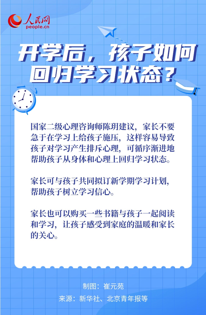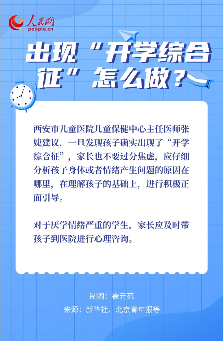暑假結(jié)束,各地各類中小學(xué)校、托幼機(jī)構(gòu)陸續(xù)開學(xué)。但不少家長發(fā)現(xiàn),開學(xué)后孩子出現(xiàn)食欲不振,心慌不想上課,晚上“翻烙餅”睡不著,情緒上悶悶不樂、焦慮或者容易因小事發(fā)脾氣,身體上出現(xiàn)肚子疼、頭疼等一系列生理、心理和行為上的不適表現(xiàn)。專家提醒,這是“開學(xué)綜合征”的表現(xiàn)。那么,如何才能緩解這些不適癥狀,讓孩子盡快恢復(fù)到有規(guī)律的生活學(xué)習(xí)狀態(tài)呢?