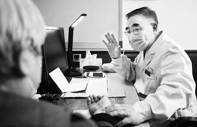 張伯禮(右)為患者把脈、問診。 新華社發(fā)