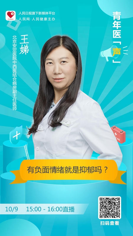 10月9日15:00-16:00,北京安定醫(yī)院中西醫(yī)結(jié)合病房副主任醫(yī)師王娣將做客人民日?qǐng)?bào)社旗下新媒體“人民好醫(yī)生”客戶端,與大家聊聊抑郁癥的話題。