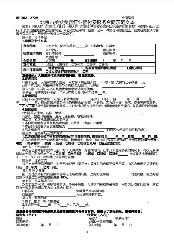 附:北京市美容美發(fā)行業(yè)預(yù)付費(fèi)服務(wù)合同示范文本