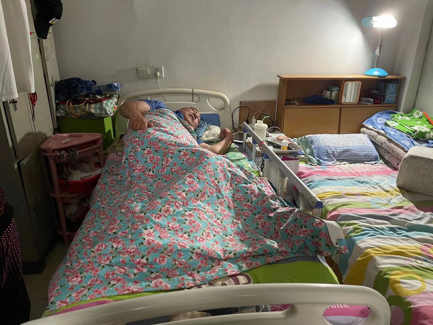 的確,王瑞福人高馬大,180斤的體重,經常是簡單的翻身也讓瘦弱的老伴忙得渾身是汗!半m然我護理他的時間長,但終歸不是專業(yè)護理人員,很多知識都不懂。以前插尿管特別容易讓他感染,感染還要跑醫(yī)院,發(fā)著高燒又行動不便,來回折騰,最后受罪的還是他!碧峒按耸,王瑞福的老伴面露愧疚,紅了眼眶。