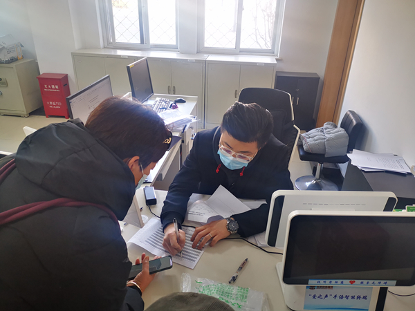 家屬正在向相關工作人員咨詢申請長護險的流程。受訪者供圖