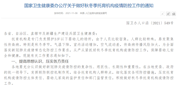 國家衛(wèi)健委:秋冬季傳染病傳播風(fēng)險加大 要確保托育機構(gòu)防疫無死角