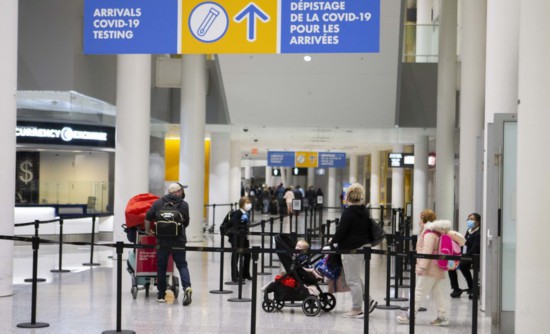 11月28日,在加拿大安大略省多倫多皮爾遜國(guó)際機(jī)場(chǎng),戴口罩的入境旅客前往新冠病毒檢測(cè)站。 據(jù)加拿大安大略省政府28日消息,渥太華發(fā)現(xiàn)2例感染新冠變異病毒奧密克戎毒株的確診病例。 新華社發(fā)(鄒崢攝)