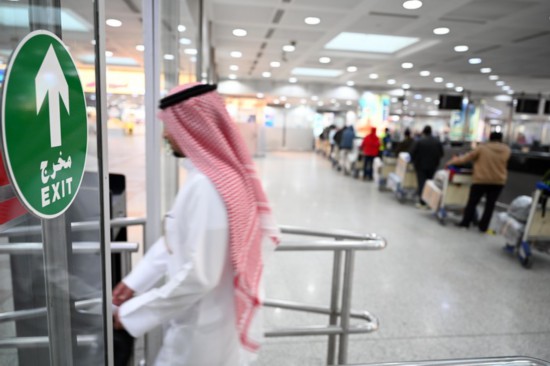 11月28日,在科威特費(fèi)爾瓦尼耶省的科威特國(guó)際機(jī)場(chǎng)出發(fā)大廳,一名旅客辦理完登記手續(xù)準(zhǔn)備登機(jī)?仆卣27日宣布,將暫停與南非等9個(gè)非洲國(guó)家的商業(yè)直航航班,以防范南非等國(guó)近日?qǐng)?bào)告的新冠病毒新型變異毒株輸入。新華社發(fā)(阿薩德攝)