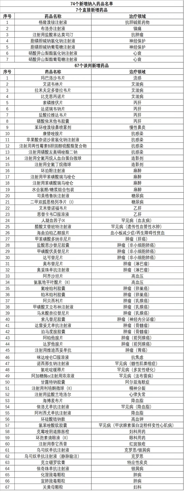 附:74個(gè)新增納入藥品名單