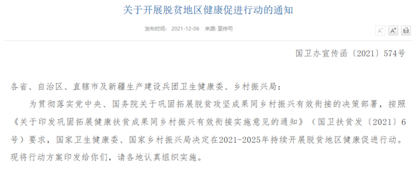 兩部門:在2021-2025年持續(xù)開展脫貧地區(qū)健康促進行動