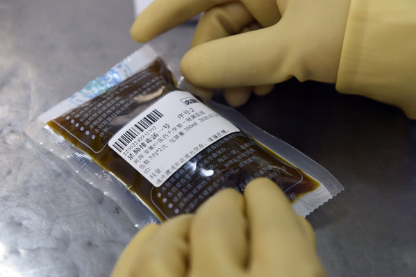 2月24日,中藥師在安徽中醫(yī)藥大學(xué)第一附屬醫(yī)院煎藥室為煎好的中藥湯劑貼標(biāo)。新華社 周牧攝