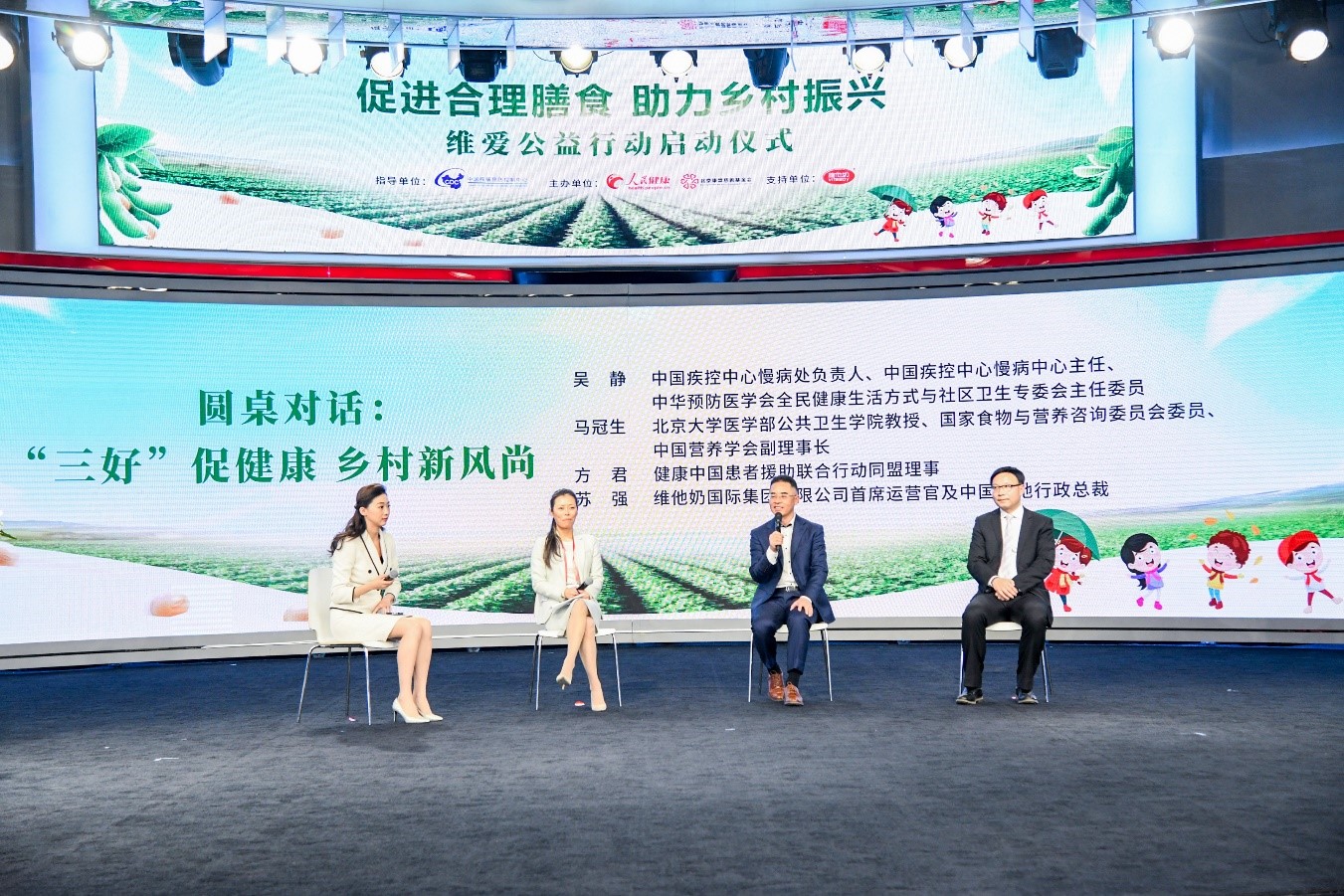 圓桌論壇環(huán)節(jié),中國疾控中心慢病處負責人、中國疾控中心慢病中心主任吳靜,北京大學醫(yī)學部公共衛(wèi)生學院教授、國家食物與營養(yǎng)咨詢委員會委員馬冠生,健康中國患者援助聯(lián)合行動同盟理事方君,維他奶國際集團有限公司首席運營官及中國內地行政總裁蘇強共同圍繞“營養(yǎng)促健康 鄉(xiāng)村新風尚”展開交流分享,助力營養(yǎng)健康事業(yè)與鄉(xiāng)村振興的有效銜接,推動形成健康生活鄉(xiāng)村新風尚。