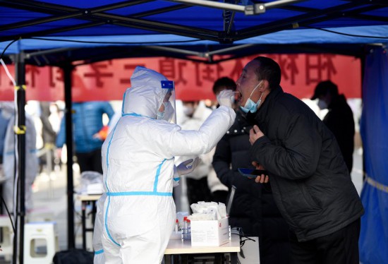 12月17日,市民在西安市碑林區(qū)柏樹林街道三學街社區(qū)核酸檢測點進行核酸檢測。新華社記者 劉瀟 攝