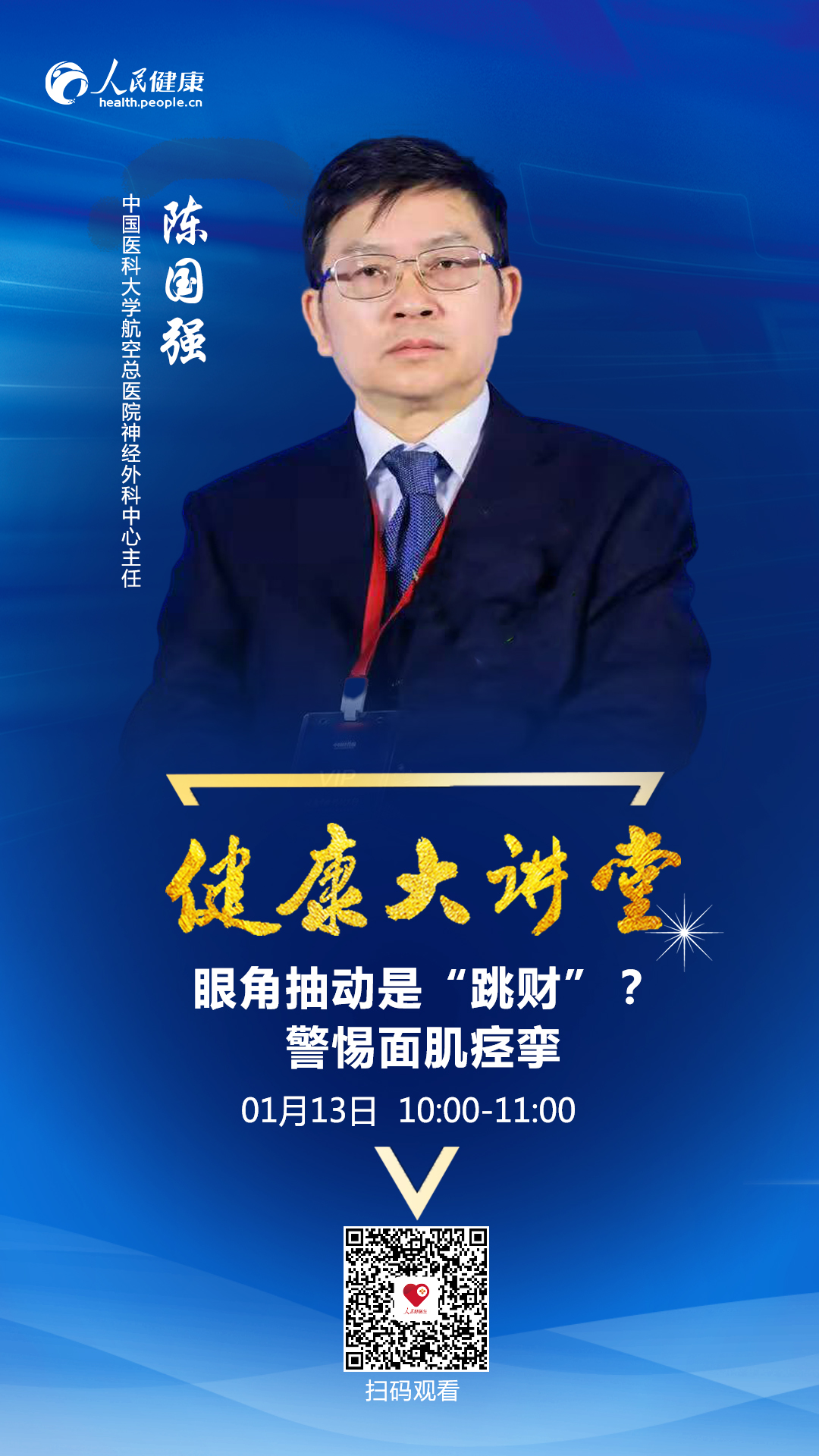 1月13日10:00,人民日報社旗下新媒體平臺“人民好醫(yī)生”《健康大講堂》欄目將邀請中國醫(yī)科大學(xué)航空總醫(yī)院神經(jīng)外科中心主任陳國強(qiáng)做客直播間,來為大家詳細(xì)講解面肌痙攣的預(yù)防和治療方法,千萬不要錯過。