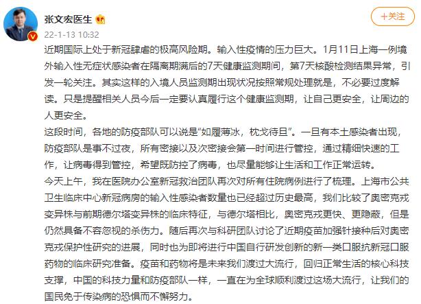 張文宏微博截圖