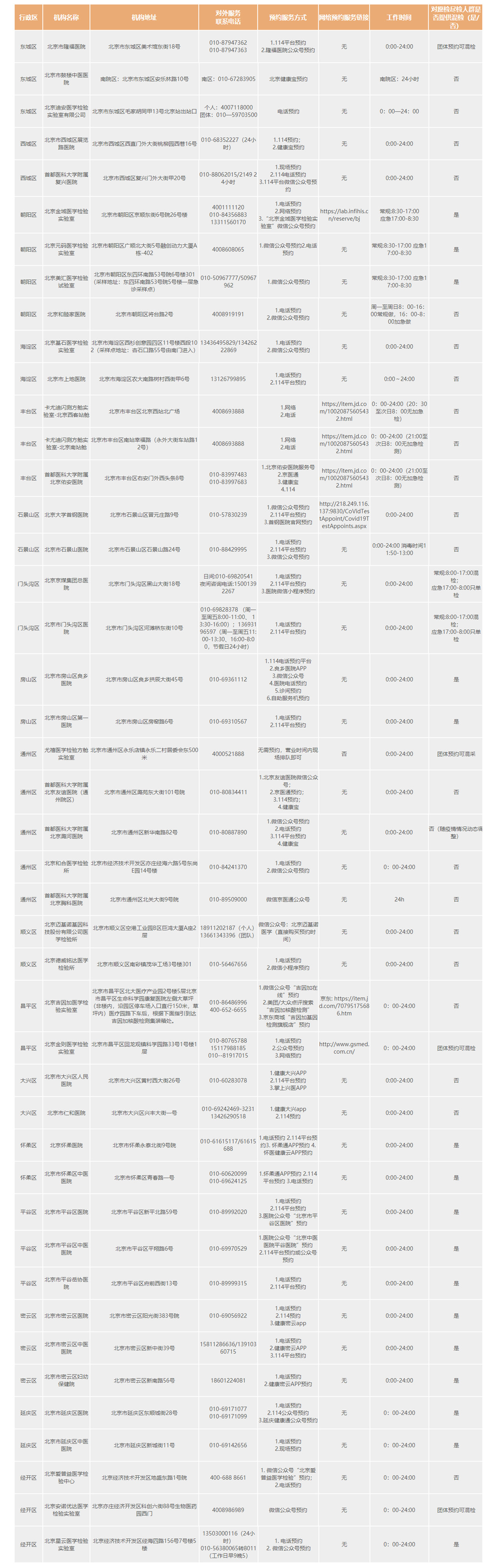 附北京市24小時(shí)核酸檢測(cè)機(jī)構(gòu)名單:
