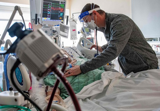 1月18日,美國(guó)康涅狄格州,醫(yī)務(wù)人員在重癥監(jiān)護(hù)病房救治新冠病人