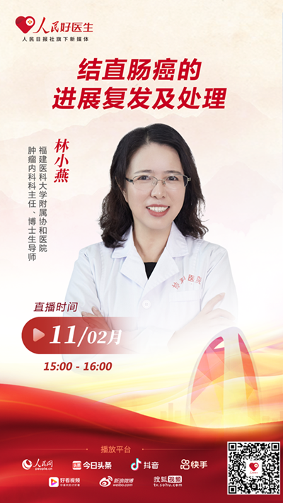 2月11日15:00,福建醫(yī)科大學(xué)附屬協(xié)和醫(yī)院腫瘤內(nèi)科科主任、博士生導(dǎo)師林小燕將做客人民日?qǐng)?bào)社旗下新媒體平臺(tái)“人民好醫(yī)生”客戶端直播間,與大家分享“結(jié)直腸癌的進(jìn)展復(fù)發(fā)及處理”相關(guān)知識(shí)。歡迎屆時(shí)收看。