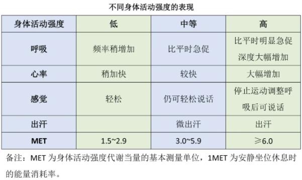 身體活動(dòng)的形式很多,是否達(dá)到中、高強(qiáng)度水平呢?建議對(duì)照下表: