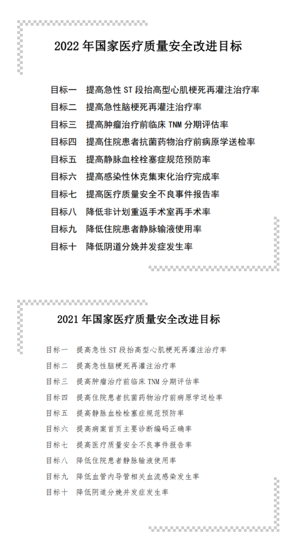 從2021年起,國家衛(wèi)健委推出“國家醫(yī)療質(zhì)量安全改進(jìn)目標(biāo)”,以目標(biāo)管理的模式推進(jìn)各級各類醫(yī)療機(jī)構(gòu)不斷改善醫(yī)療質(zhì)量,加大醫(yī)療安全管理力度。